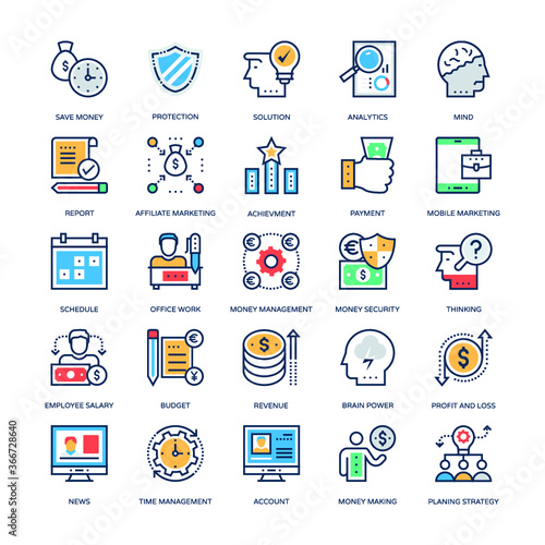 Vector set of business and digital money icons in thin line style. Website UI and mobile web app icon. Outline design illustration