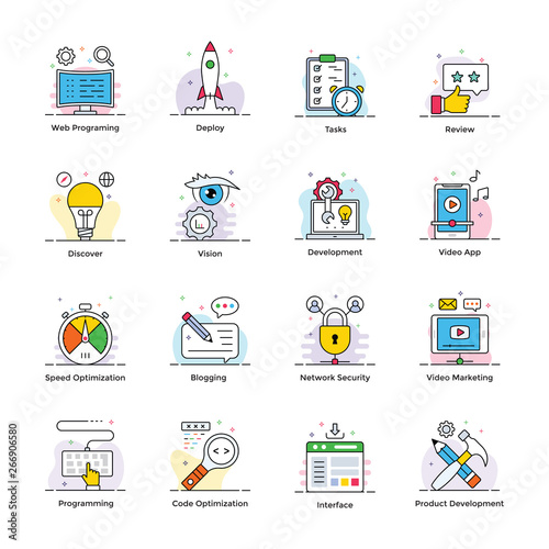Vector set of business, finance and cyber security icons in thin line style. Website UI and mobile web app icon. Outline design illustration