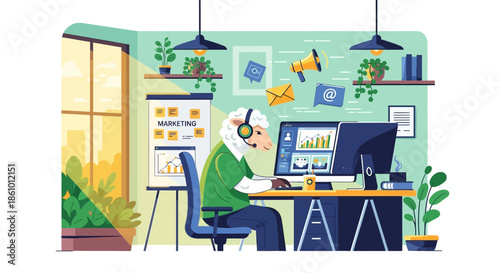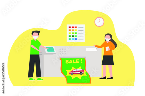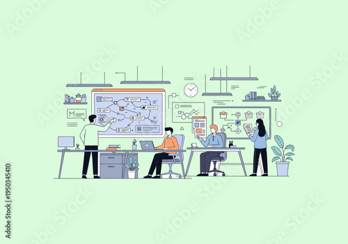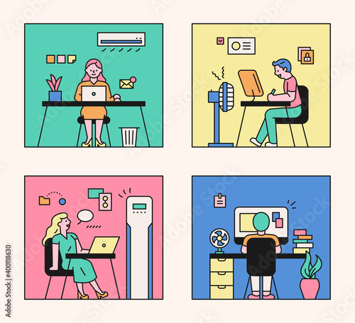 Vector set of business people posters. Coffee breaks, Boss, Businessman and Projector flat style design elements.