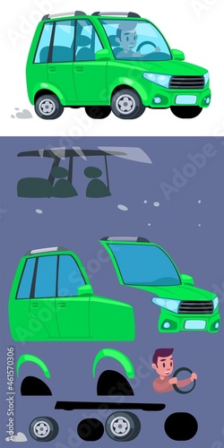 Vector set of car service station, repair shop interior concept posters, banners. Flat style design elements.