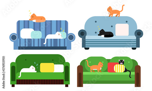 Vector set of car service station, repair shop posters, banners. Interior cleaning, Replacement glass, Car repairs and Auto painting concept flat style design elements.