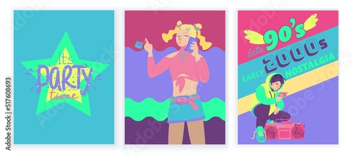 Vector set of cards with cute enchantress and inspirational quotations. Beautiful little girls, mythical creatures and fairy tale characters with magic wand and magic potion.