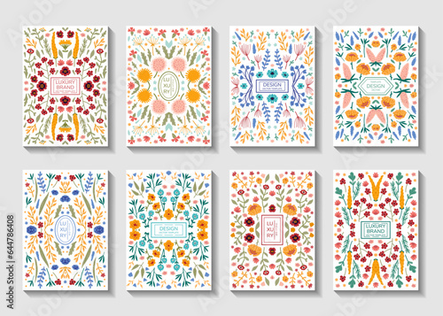 Vector set of cards, flags party decorations with yummy sweets candies, lollipops, candy canes, sweet houses. Sweet candy flyer, invitation, notepad templates.