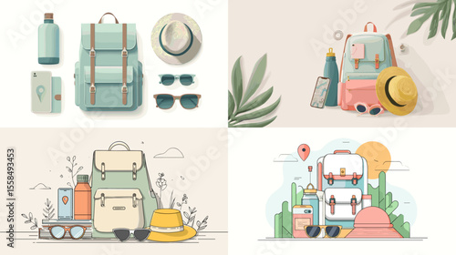 Vector set of cars concept posters, banners. Car show, car shop, parking lot with sellers, buyers, drivers flat style design elements.