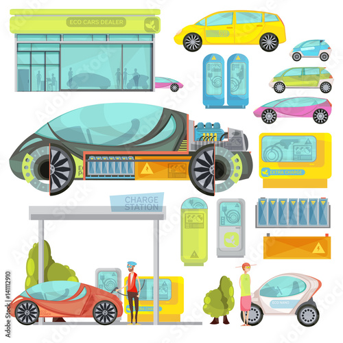 Vector set of cars horizontal banners. International exhibition of cars, Demonstration of the car, Secure parking flat style design elements.