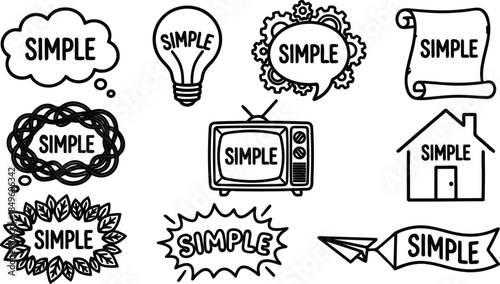 Vector set of circus isolated labels, logo and emblems. Black and white circus symbols and design elements. Clown, arena, tickets, magic hat.