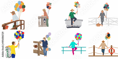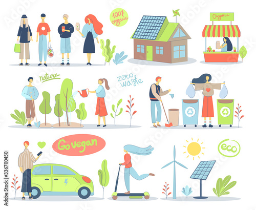 Vector illustration of professional cleaning ladies and cleaner male washing floor, dusting furniture. Cleaning people symbols, icons isolated on white background. Flat style design.