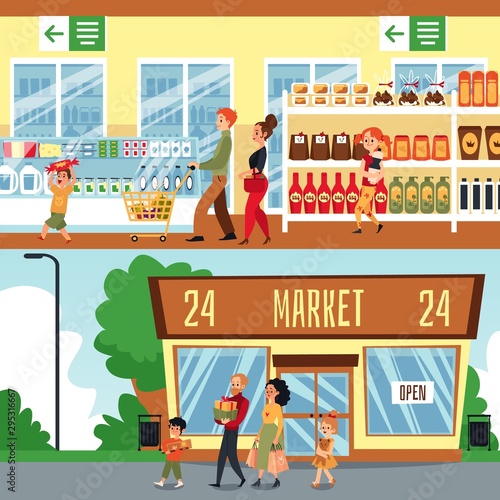 Vector set of horizontal banners with Coffee at a gas station, Coffee house, Street coffee concept design elements in flat style.