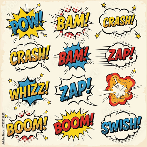 Vector set of comic text. Illustration in pop art style. Comic speech bubbles for different emotions and sound effects