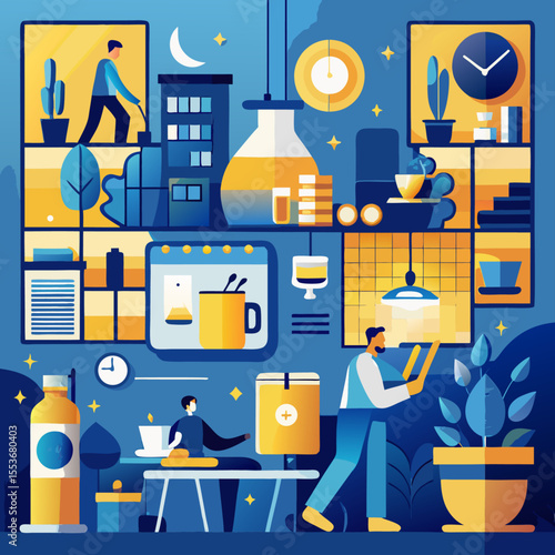Vector set of cook posters, banners. Restaurant people chef, cooks preparing food, baking pastry, waiter and waitress getting ready meals flat style design elements.