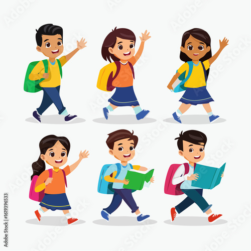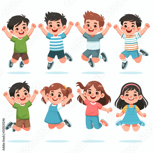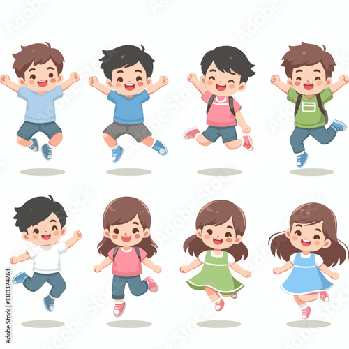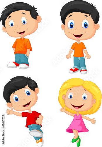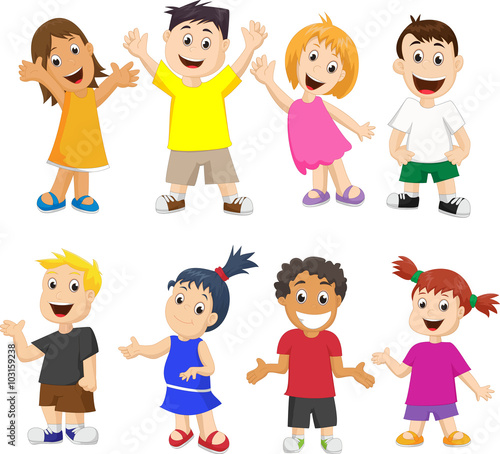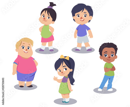 Vector illustration of different nationalities kinds. Cartoon characters. Smiling, joyful boys and girls. Set of children icons