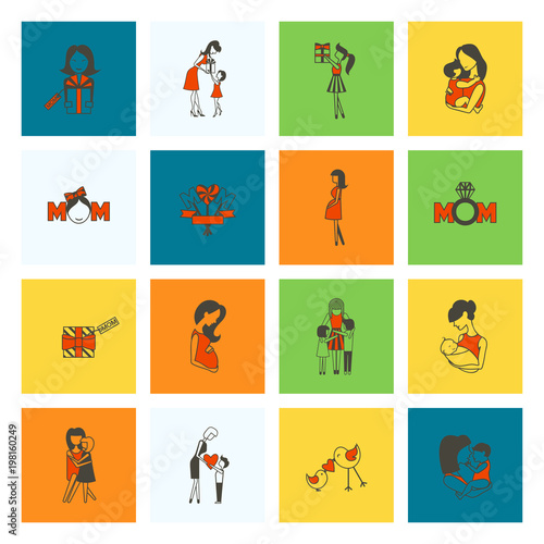 Vector set of cute cartoon kids wearing new year costumes. Flat style design elements, icons.