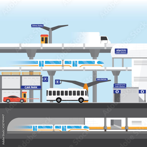 Vector set of delivery posters, banners. Logistics transportation. Delivery by plane, by truck and by ship flat style design elements for cargo services advertising.