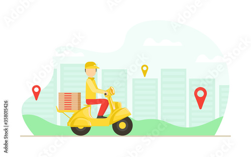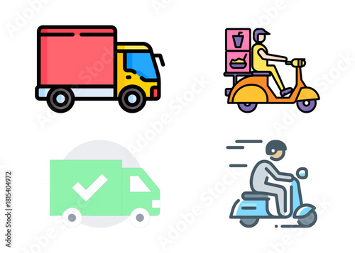 Vector set of delivery posters. Water delivery, Pizza, Flower delivery and Food delivery flat style design elements.