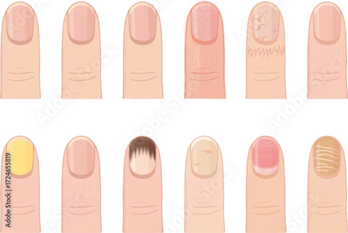 Vector set of different fashion nail shapes. False nail polish design mockup templates. Manicure, fingernails.