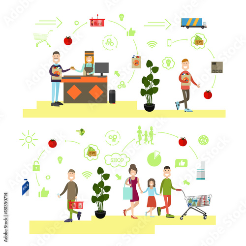 Vector illustration of elderly man and woman grandparents holding hands, happy children grandson and granddaughter. Family people symbols, icons isolated on white background. Flat style design.