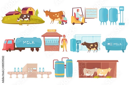 Vector set of farming and cattle breeding, beekeeping, harvesting. Village life and work. Flat design.