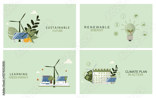 Vector set of farming posters, banners. Sickle, Mill, Plow and Hay design elements in flat style.