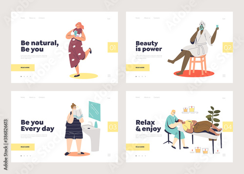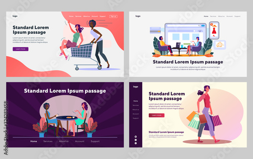 Vector set of fashion atelier square posters. Dummy, Fabric, Embroidery and Sewing suit concept design elements in flat style.