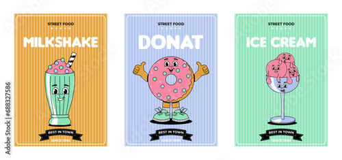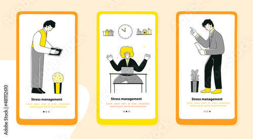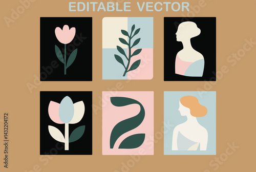 Vector set of fashion posters. Male model, Model woman, Photosession and Show swimwear design elements in flat style.
