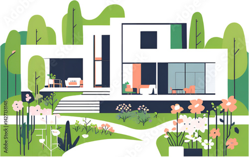 Vector set of father interior posters, banners. Nursery, living room and park interior. Places where parents live, play games, take rest with their sons and daughters flat style design elements.