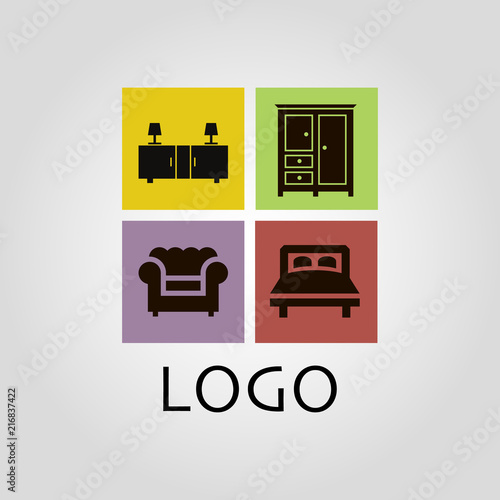 Vector set of house square posters. Garage, Canteen, Children bicycle and Bedroom flat style design elements.