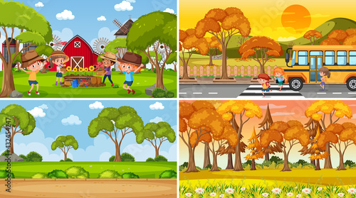 Vector set of hunter posters, banners with men hunting deer, fishing while sitting in boats and on pier. Flat style design.