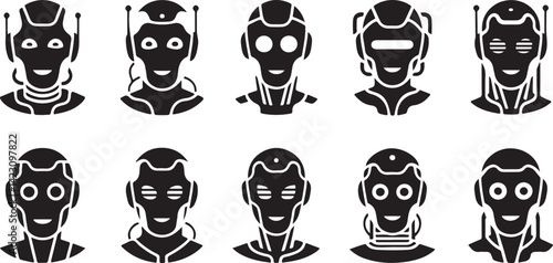 Vector illustration of Buddha, north American totem pole, ethnic tribal masks. Idols flat symbols, icons isolated on white background.