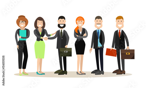 Vector illustration of professional judge, lawyer, police officer, witness and prisoner. Law court people flat style design elements, icons isolated on white background.