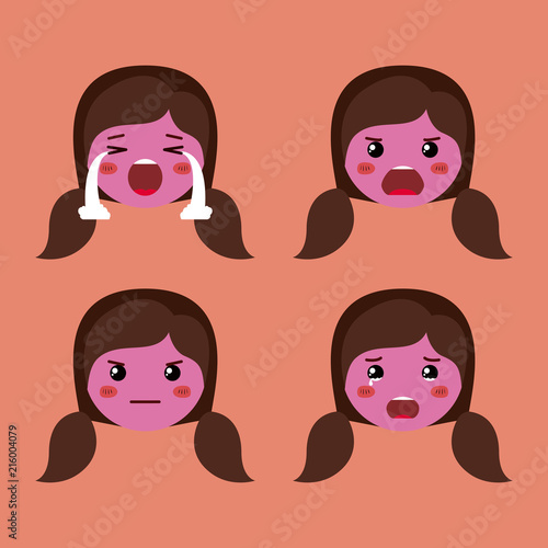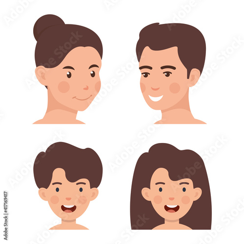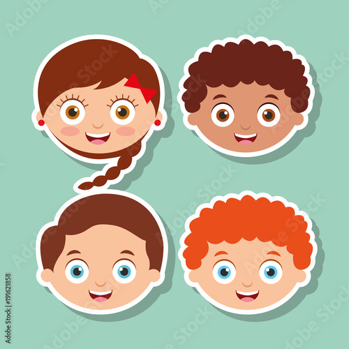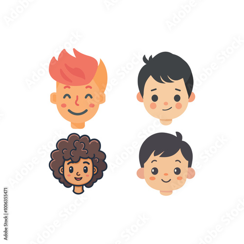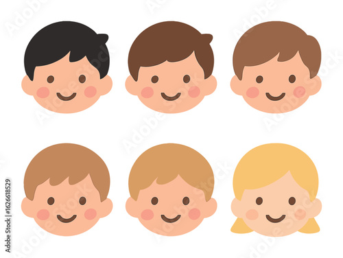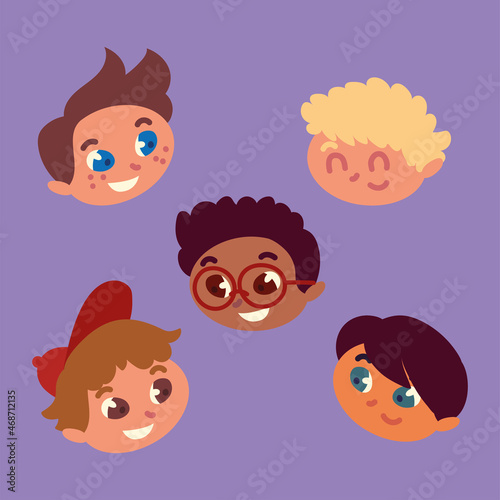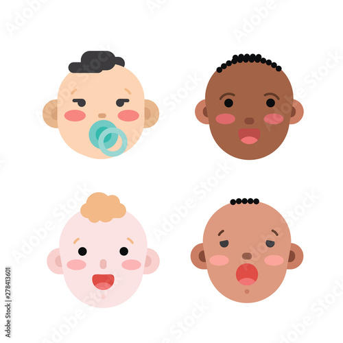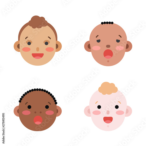 Vector set of little boys faces with different kinds of facial expressions. Smiling, calm, astonished faces, with sticking out tongue. Feelings and emotions concept design elements.