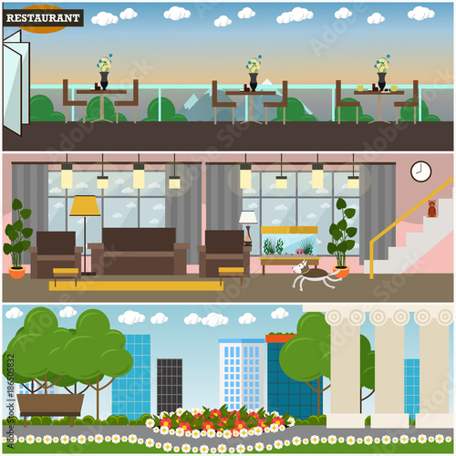 Vector set of maternity hospital and kindergarten posters, banners. Flat style design elements.
