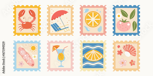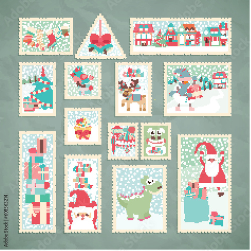 Vector collection of Merry Christmas and Happy New 2017 Year design elements with holiday symbols. Set of greeting cards, stamps.