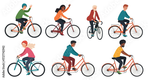 Vector set of characters, sport and modern street transport icons isolated on white background. Means of transport concept design elements in flat style.