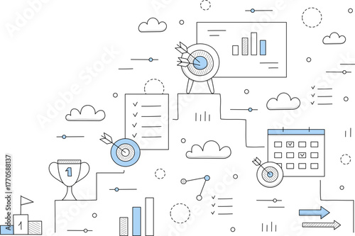 Vector set of Management and Teamwork concept banners. Modern thin line flat design elements for web, marketing, presentation and printing.