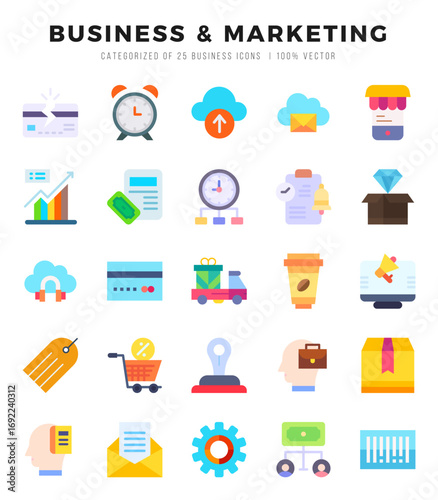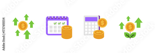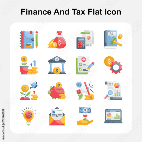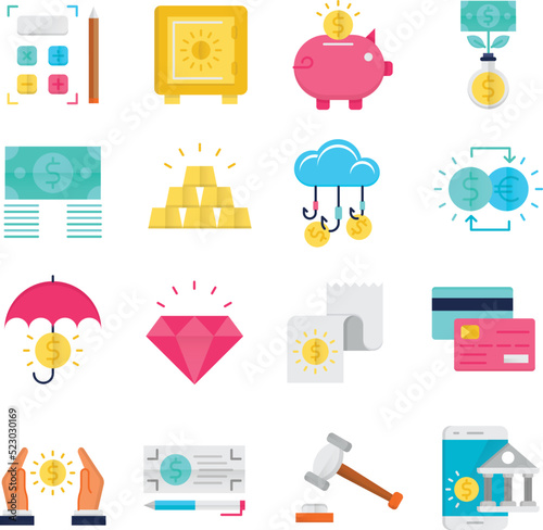 Vector set of Money and Finance icons in flat style. Design elements for web and mobile applications. Business pictogram collection.
