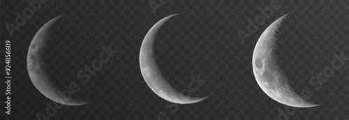 Vector lunar phase icon set. The whole cycle from new Moon to full Moon on transparent background.
