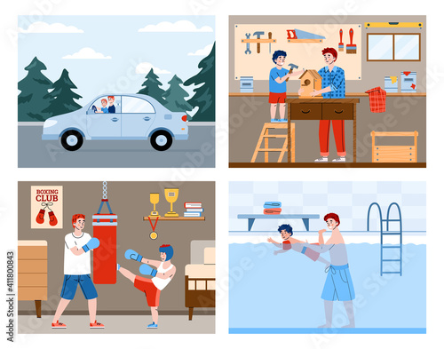 Vector set of mother concept posters. Baby, Feeding, Mother and Dinner flat style design elements.