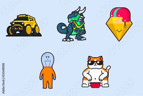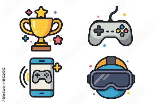 Vector set of motorcycle accessories. Design elements and icons isolated on white background. Sport bike, helmet, gloves, boots, jacket.