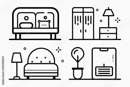 Vector set of museum isolated icons. Black and white museum symbols and design elements. Art, statue, museum building, ticket.