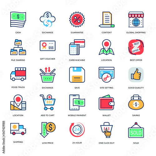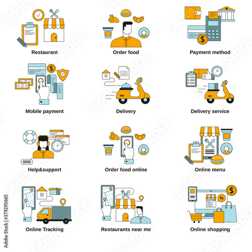 Vector set of Online shopping and digital payments icons in thin line style. Website UI and mobile web app icon. Outline design illustration