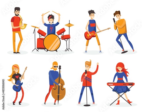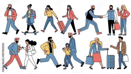 Vector set of photographers, videographers, journalists shooting and interviewing people, making reports for mass media. Couple taking selfie. Photo, video concept design elements, icons in flat style