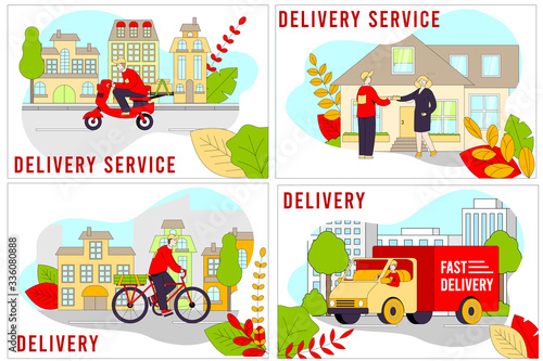 Vector set of places where you can ride bike. City, forest, park and mountains cycling. Active lifestyle. Flat design