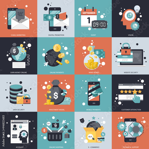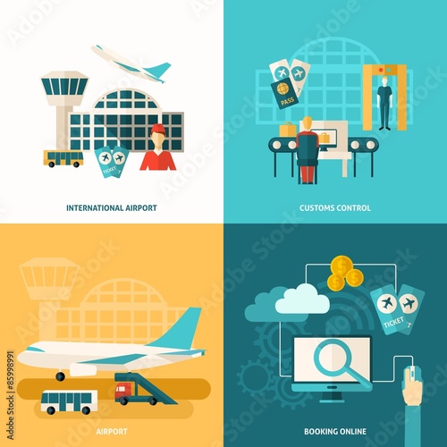 Vector set of planet exploration posters, banners. Controller, Space station, Investigations and Flag concept design elements in flat style.