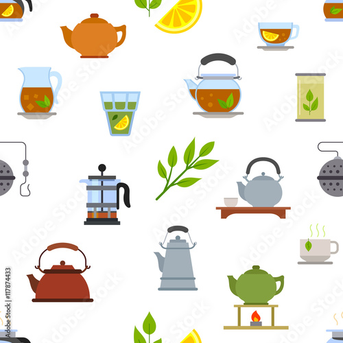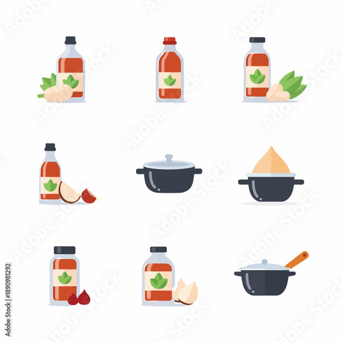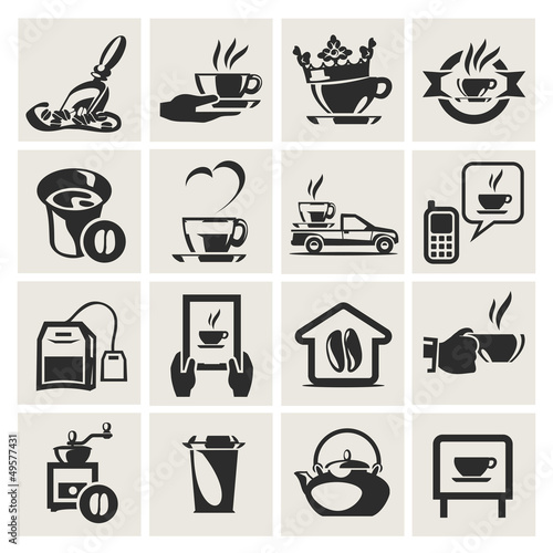 Vector set of popular drinks. Strong coffee, hot tea, alcoholic cocktails and tomato juice. Favorite nonalcoholic beverages. Flat design