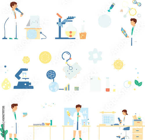 Vector illustration of woman having broken pipes or water leak problems, electricians fixing electrical problems. Professional workers symbols, icons isolated on white background. Flat style design.