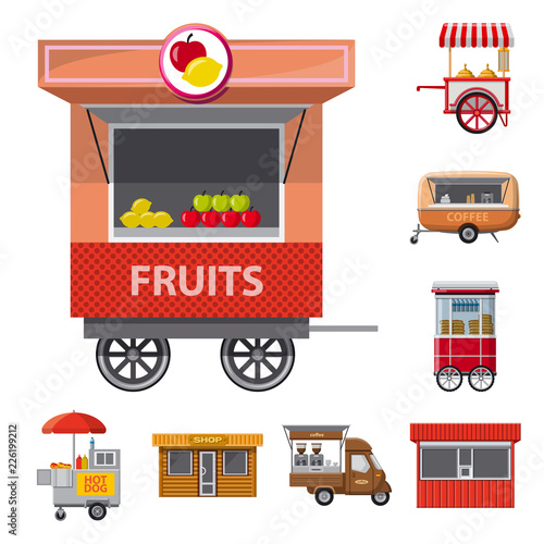 Vector set of purchases concept posters, banners. Cashier, Promoter, Products and Vegetables design elements in flat style.