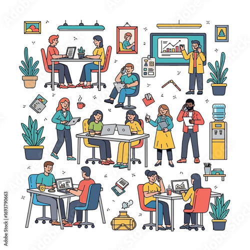Vector set of radio studio workers, musicians and singers creating content for live and recorded programmes. Radio people symbols, icons isolated on white background. Flat style design.