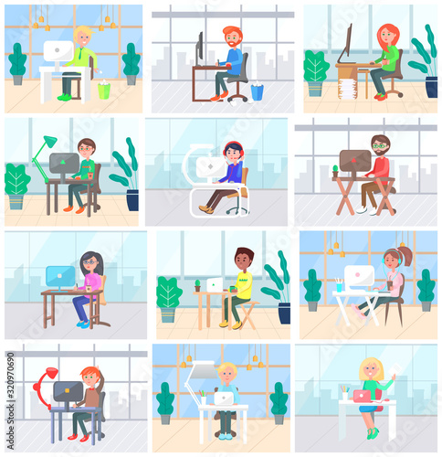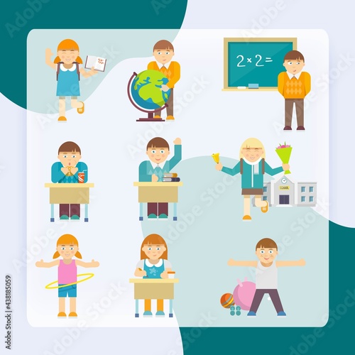Vector illustration of chemistry professor giving lecture, scientists making scientific discoveries. Science people, lab equipment symbols, icons isolated on white background. Flat style design.