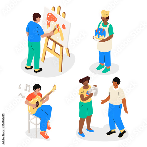 Vector set of biologists, chemists, physicists carrying out experiments isolated on white background. Scientists and laboratory equipment concept design elements, icons in flat style.