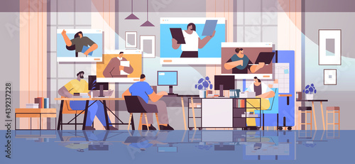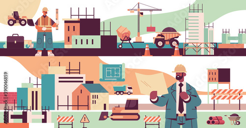 Vector set of space exploration concept posters, banners. Mission control center, astronauts in outer space, landing on Mars and on the Moon, space technologies in flat style.